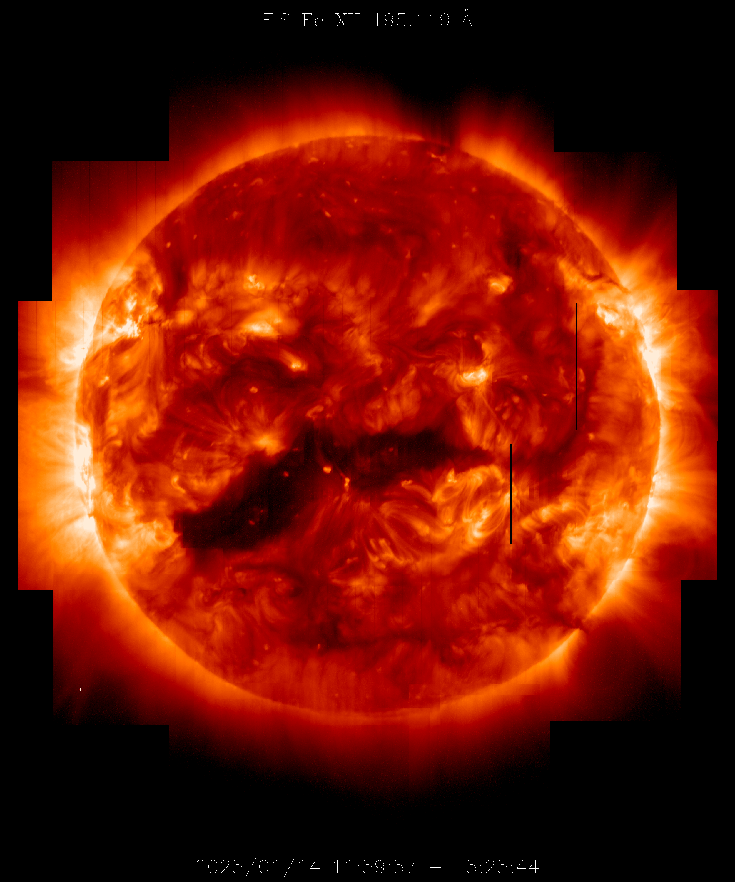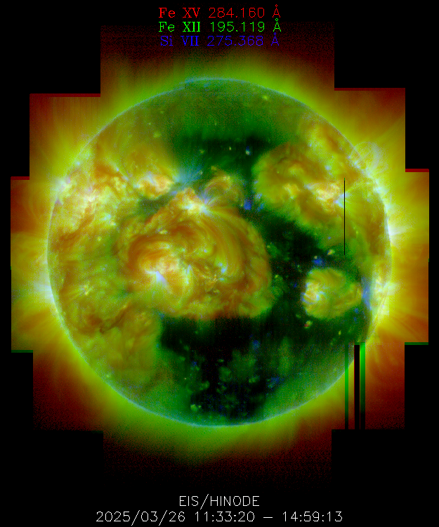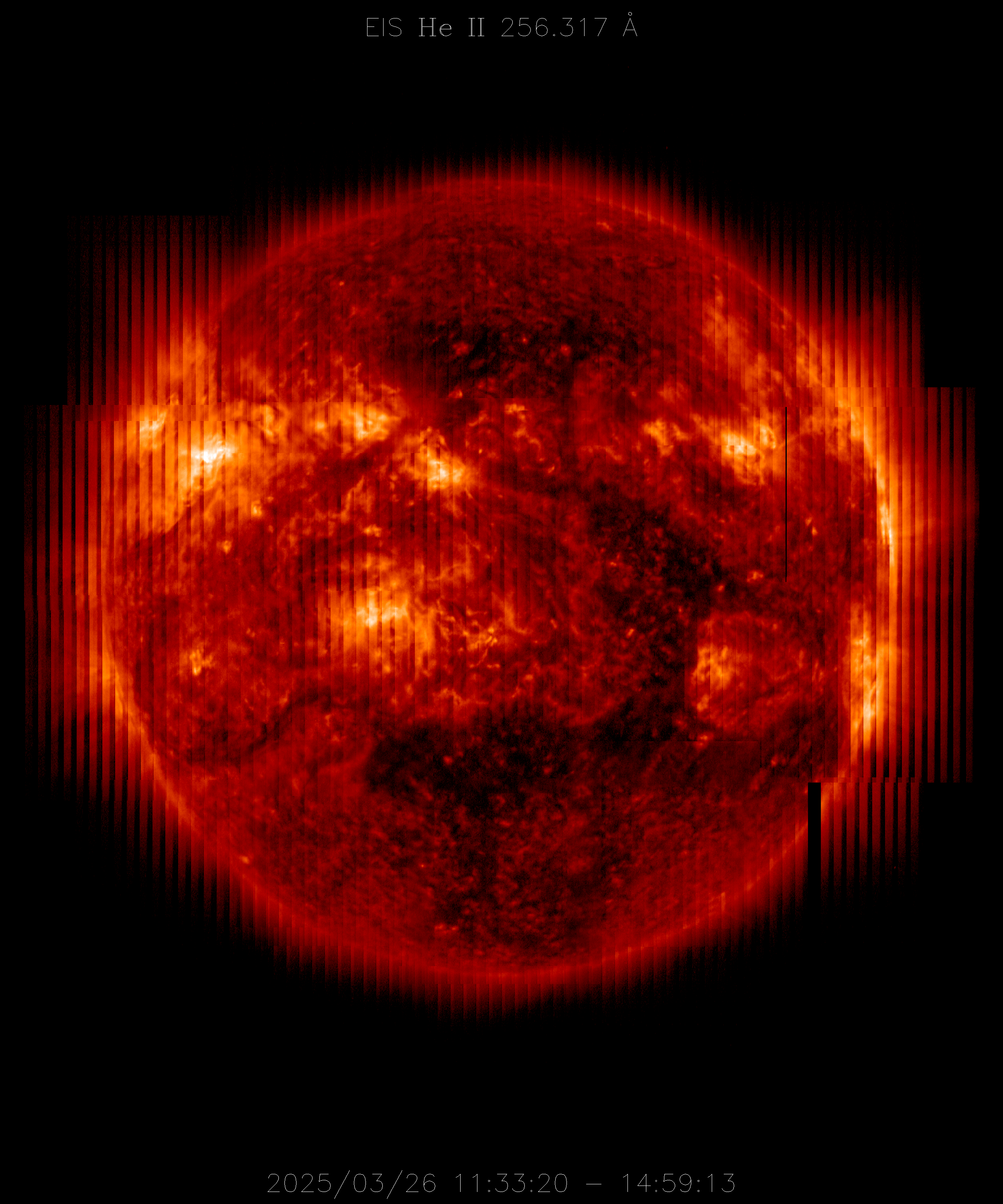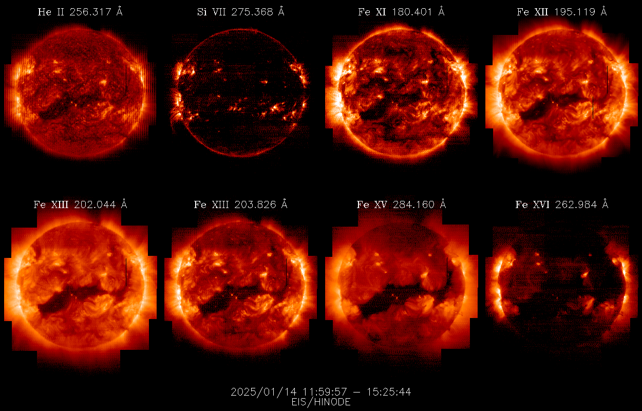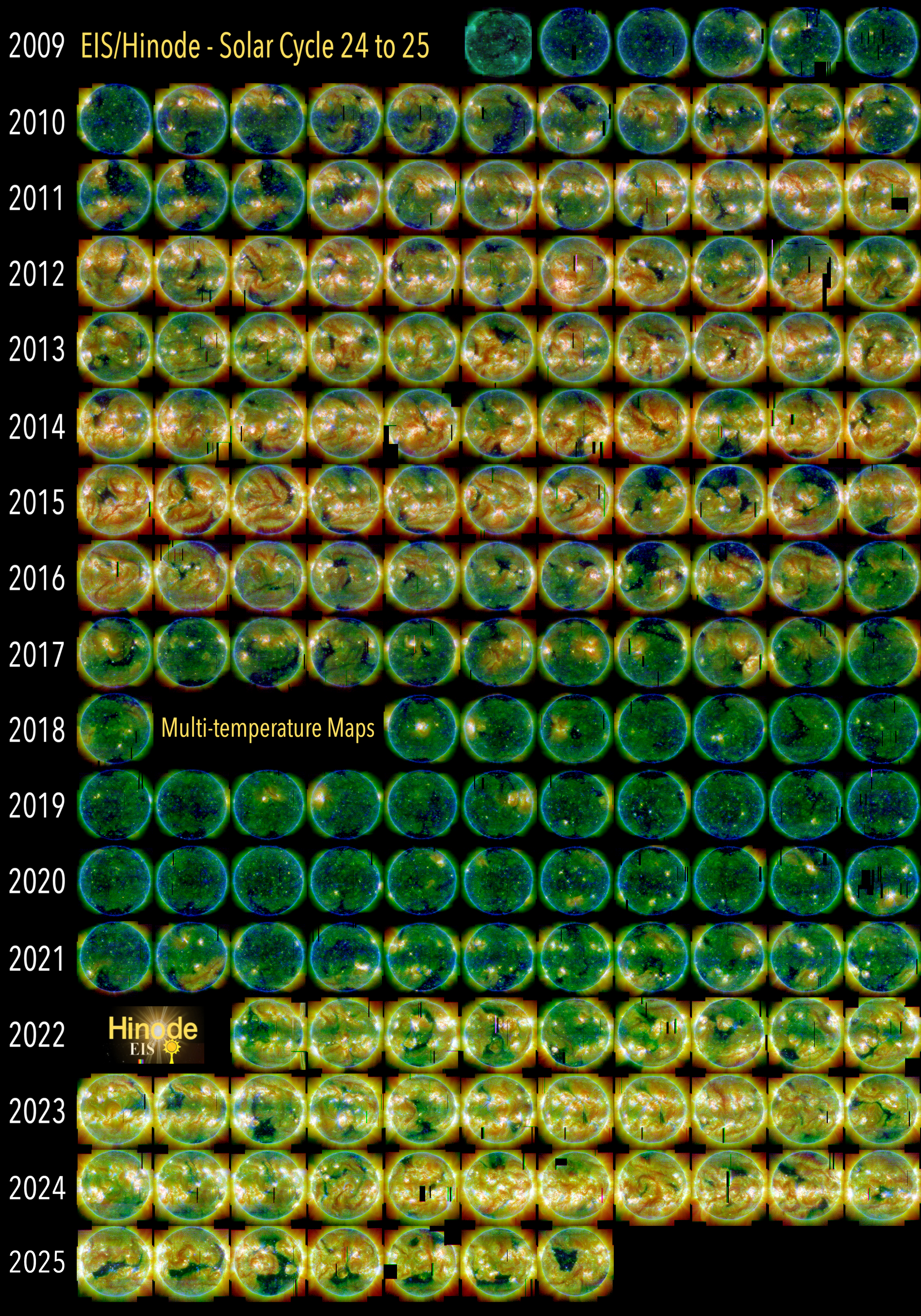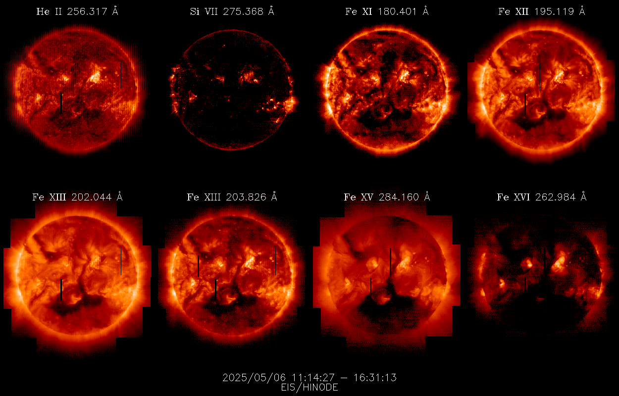EIS takes full-disk mosaics every 3-4 weeks using the 40" slit (slot). This Hinode Observing Program (HOP130) started in 2009.