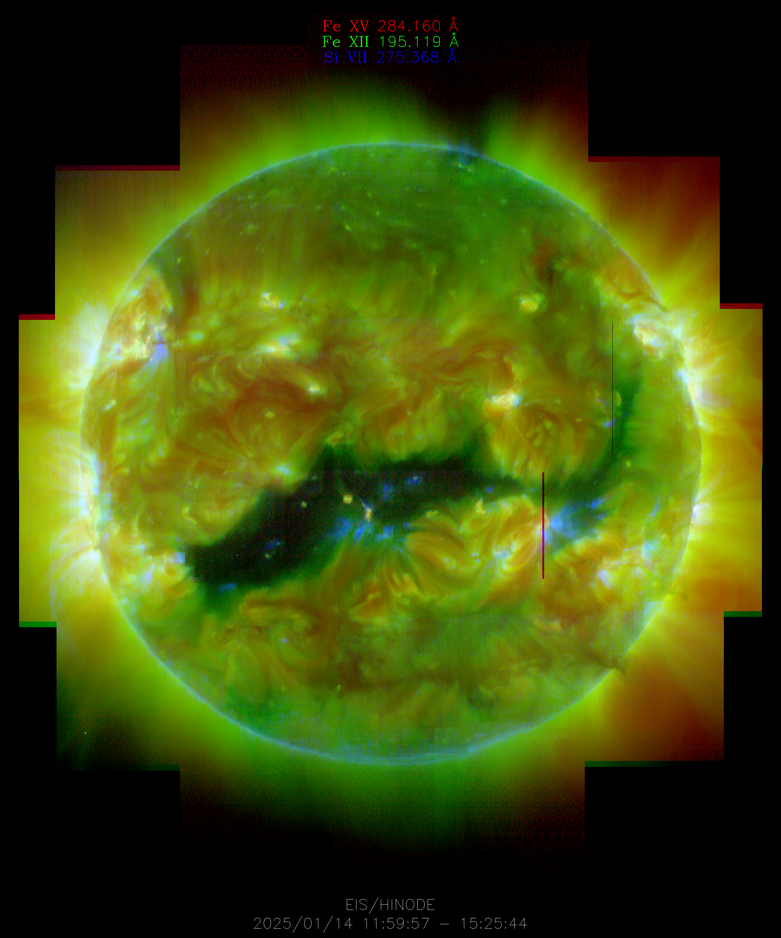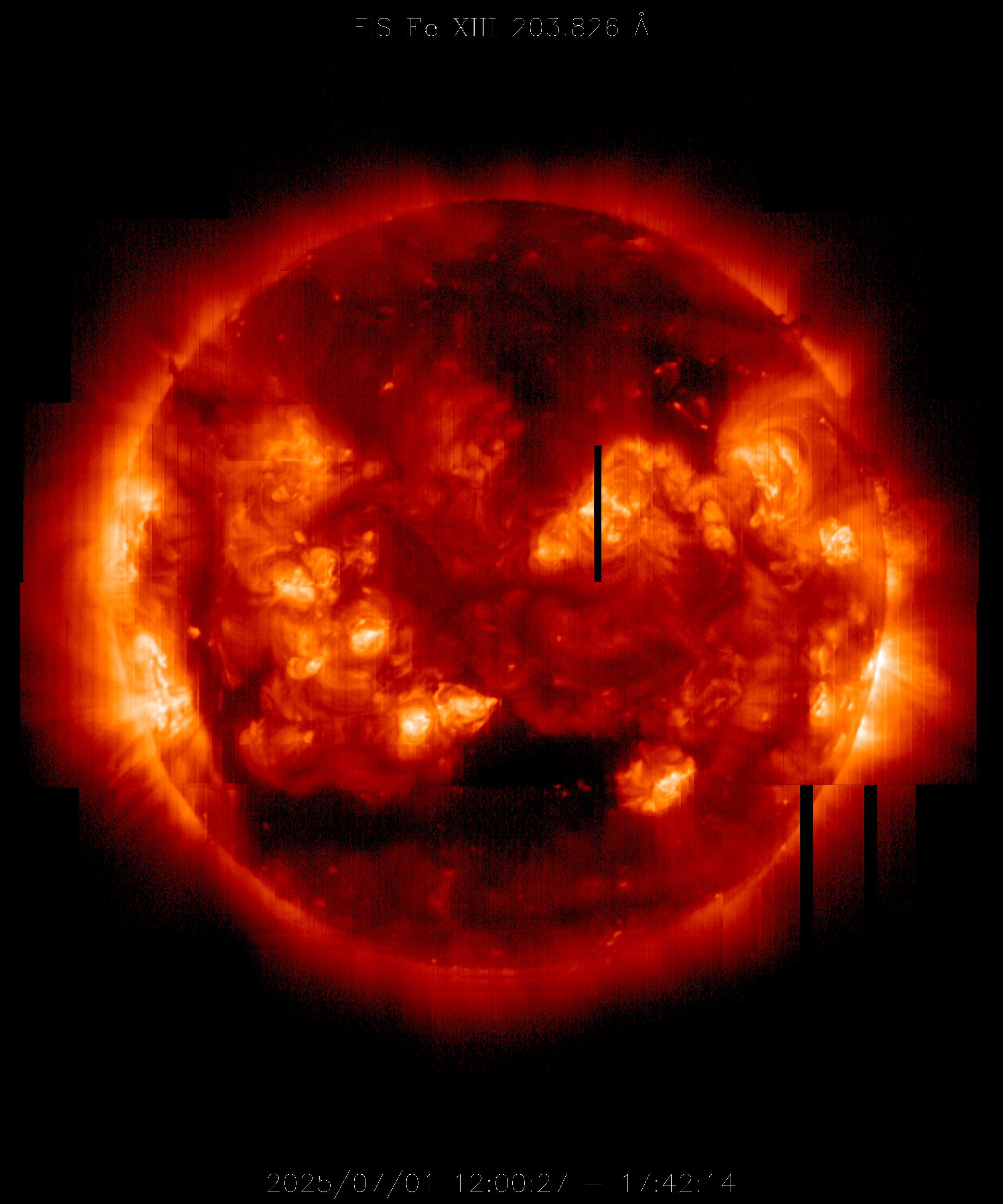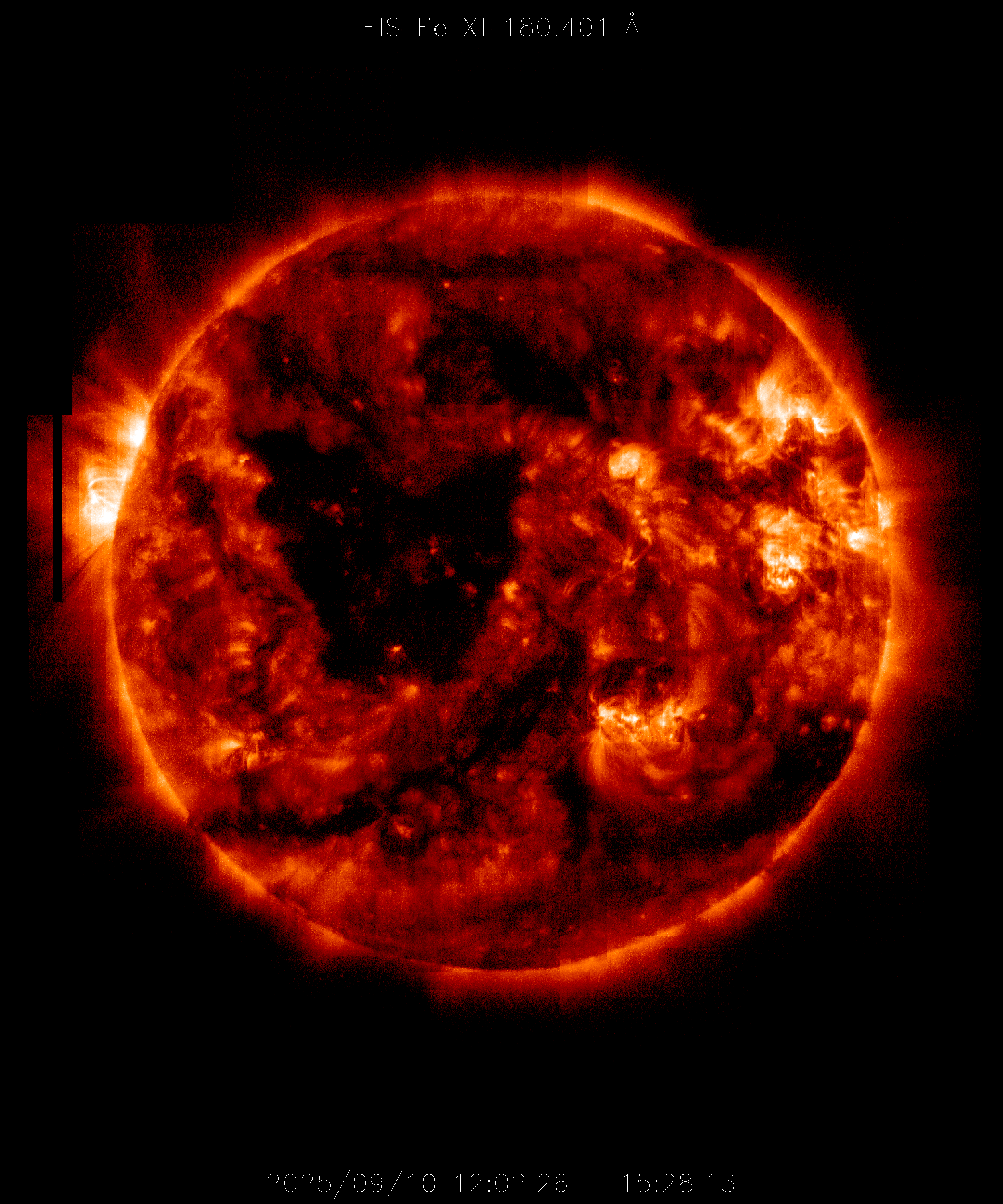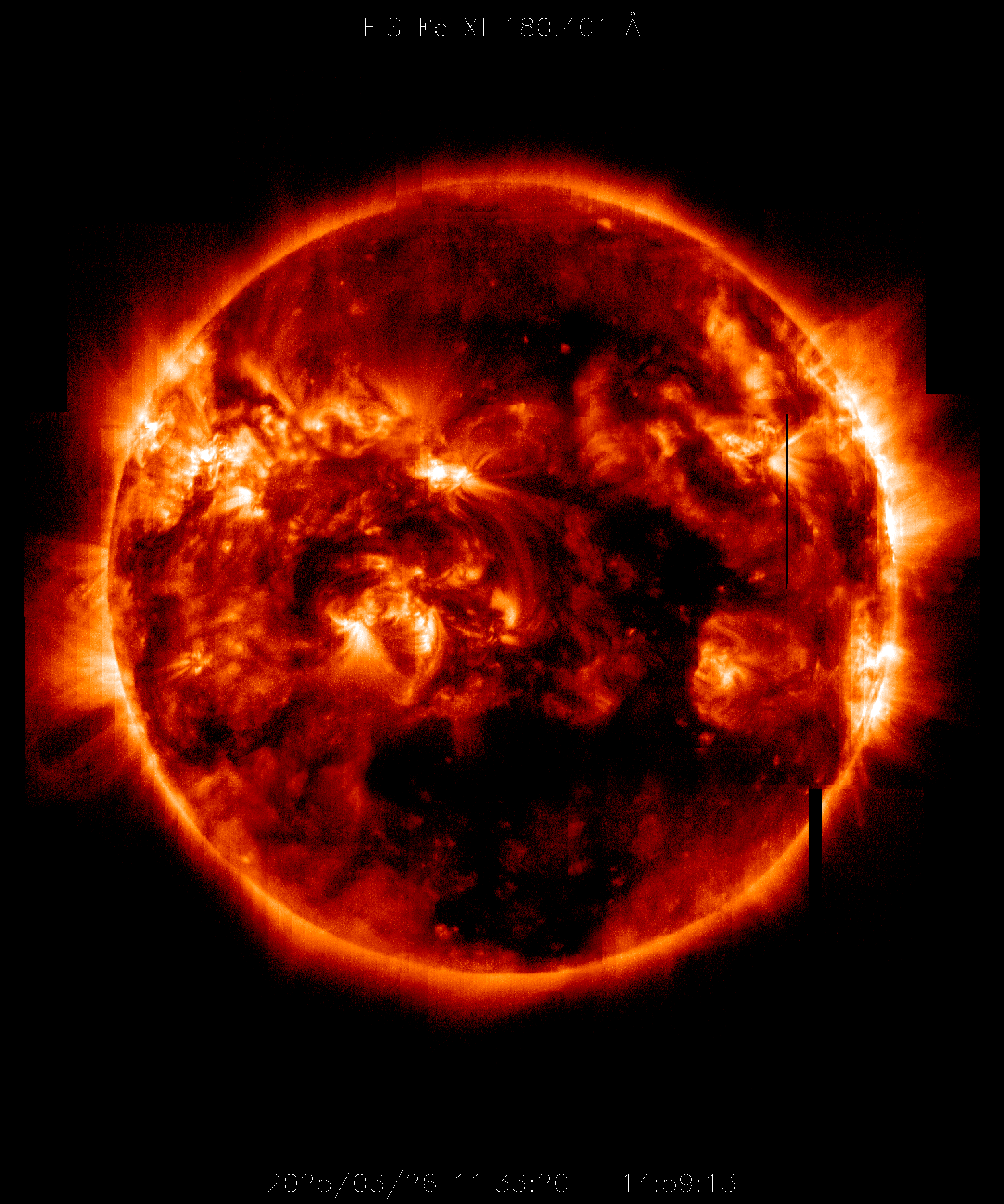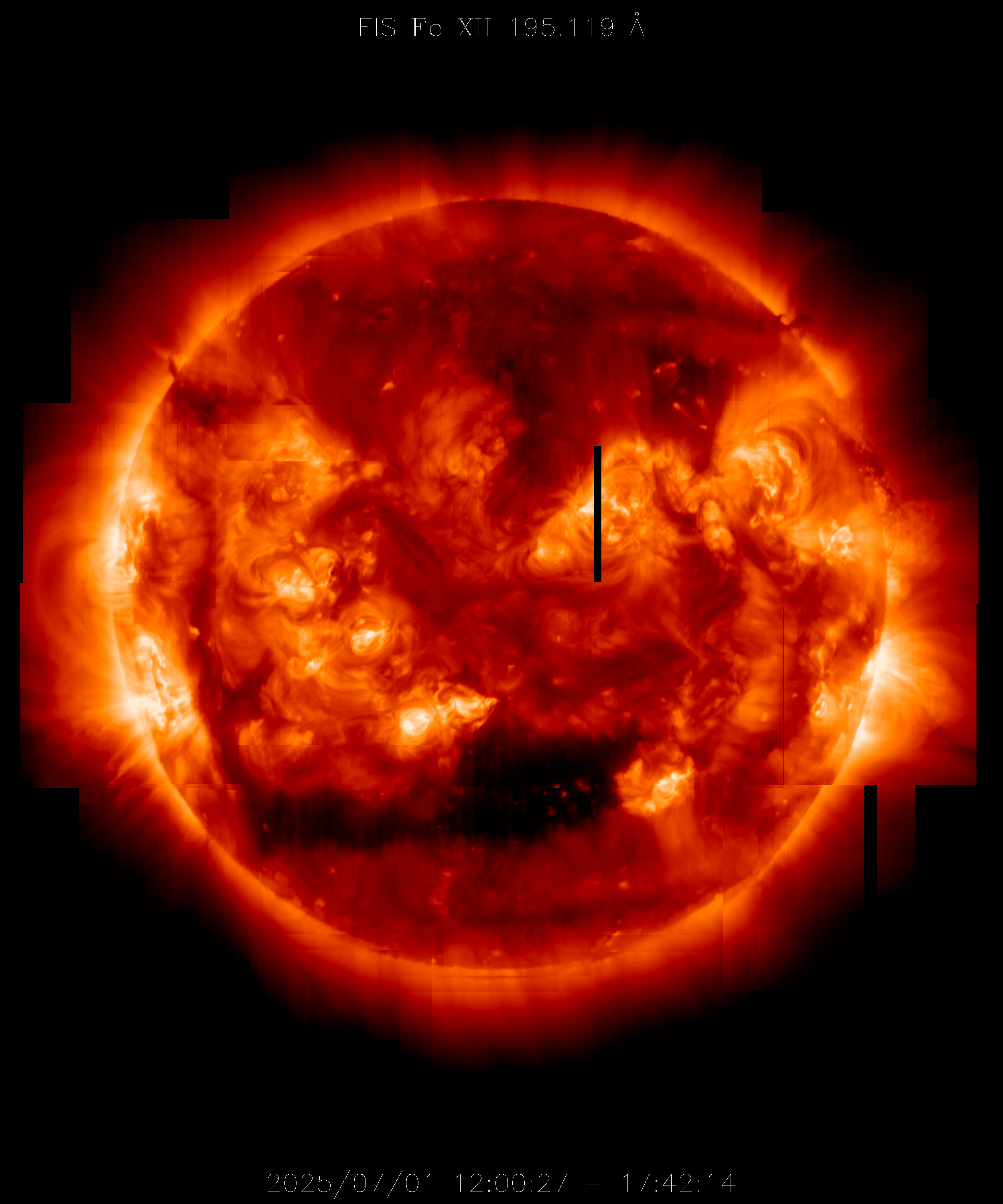 EIS takes full-disk mosaics every 3-4 weeks using the 40" slit (slot). This Hinode Observing Program (HOP130) started in 2009.