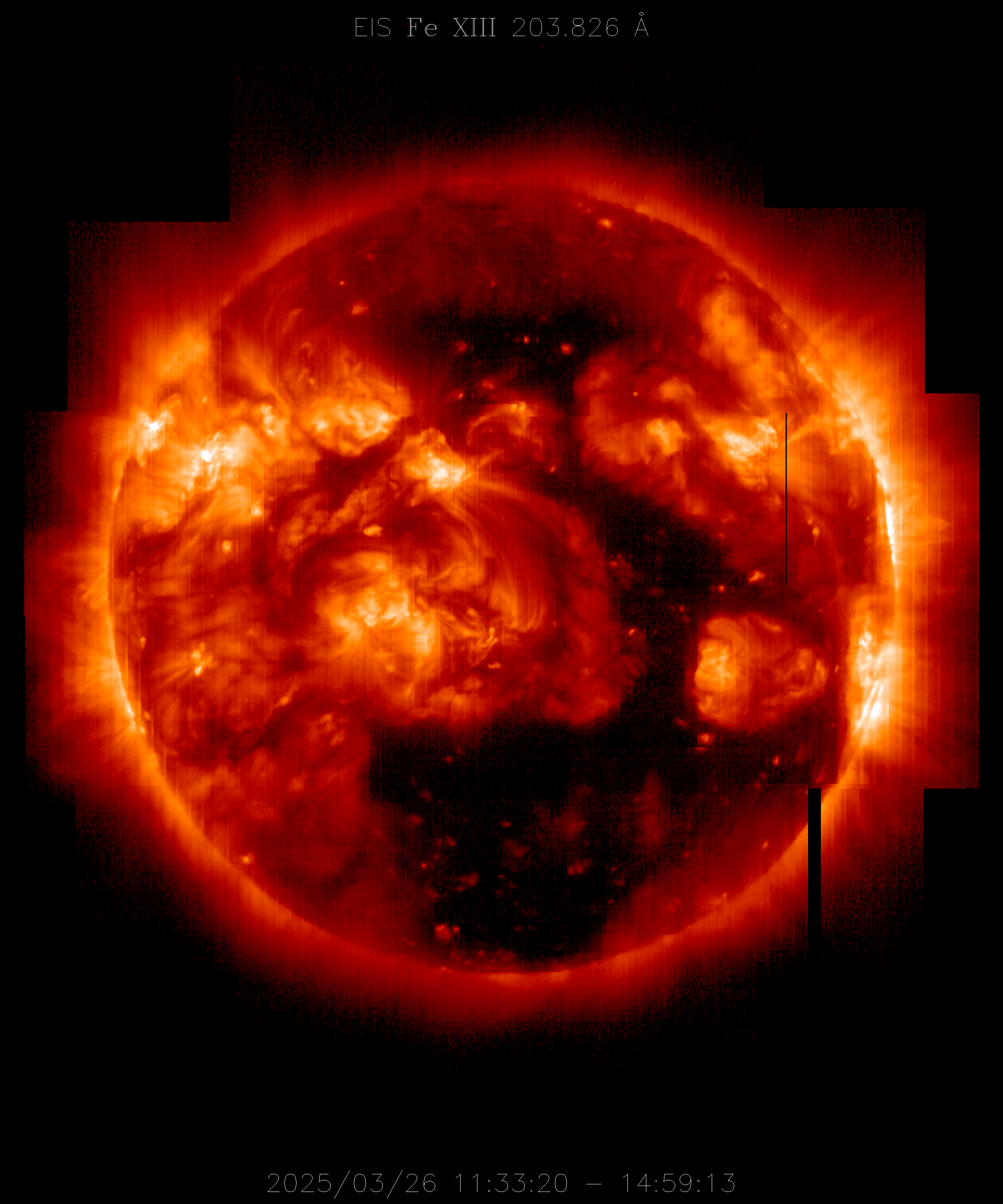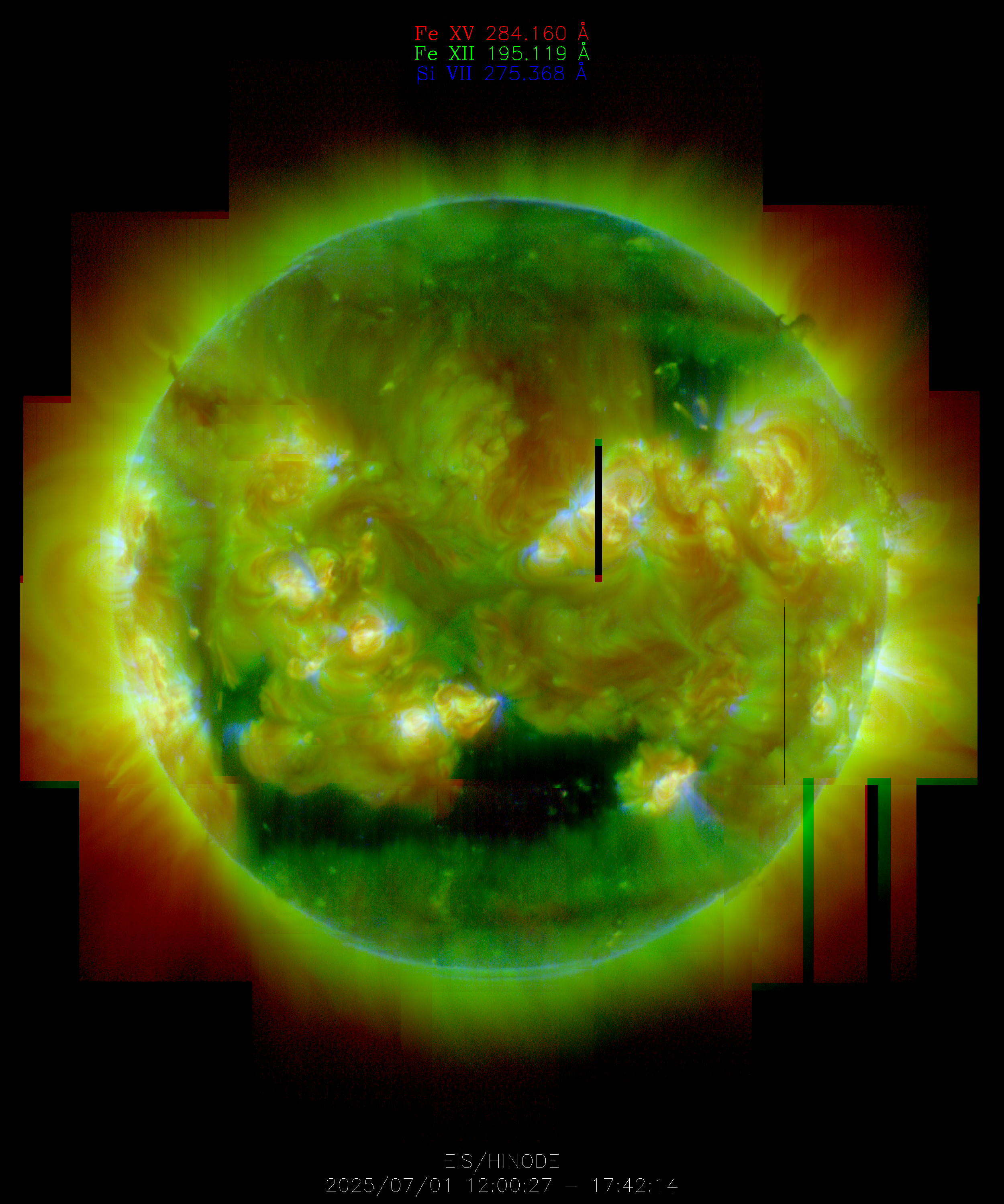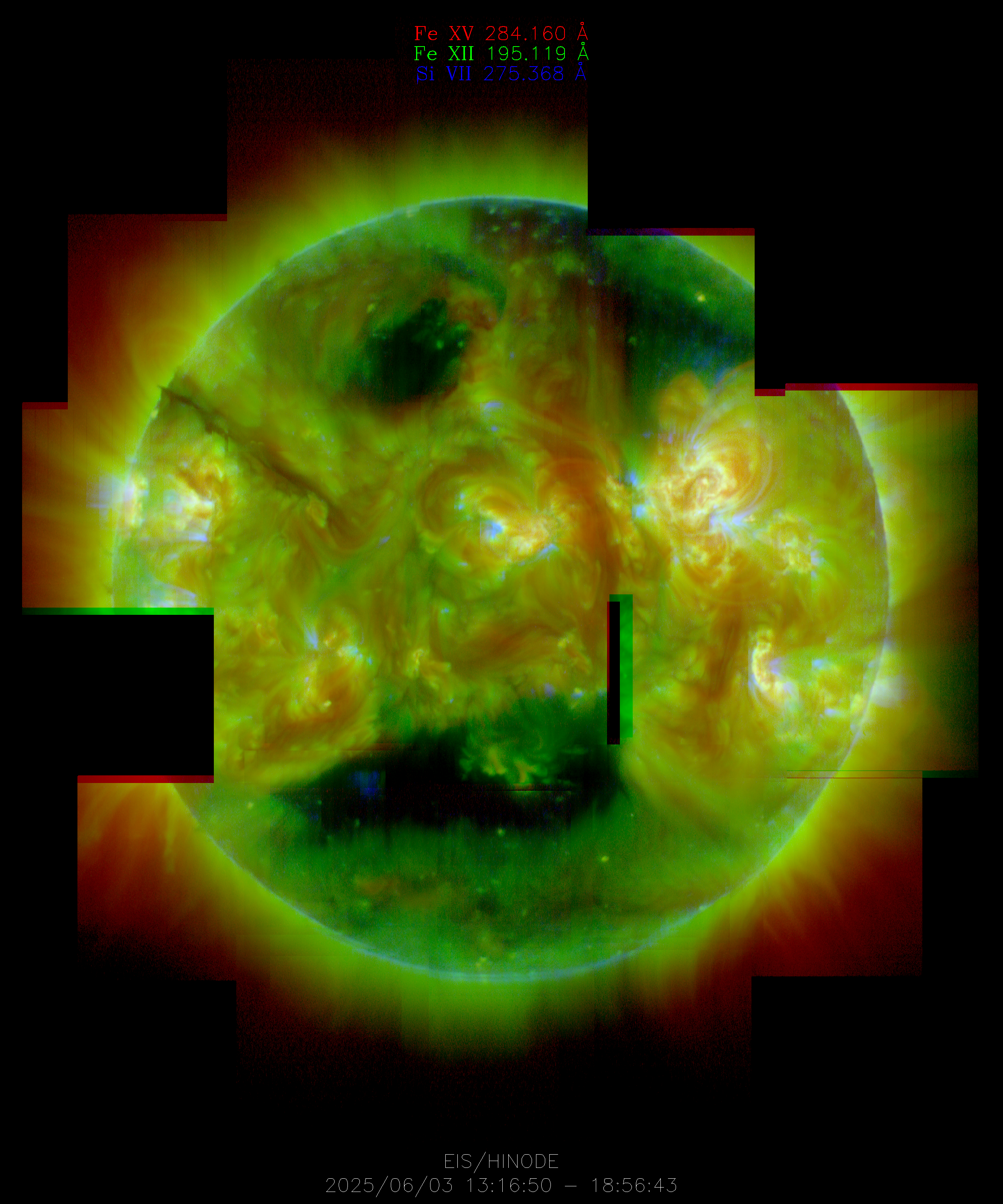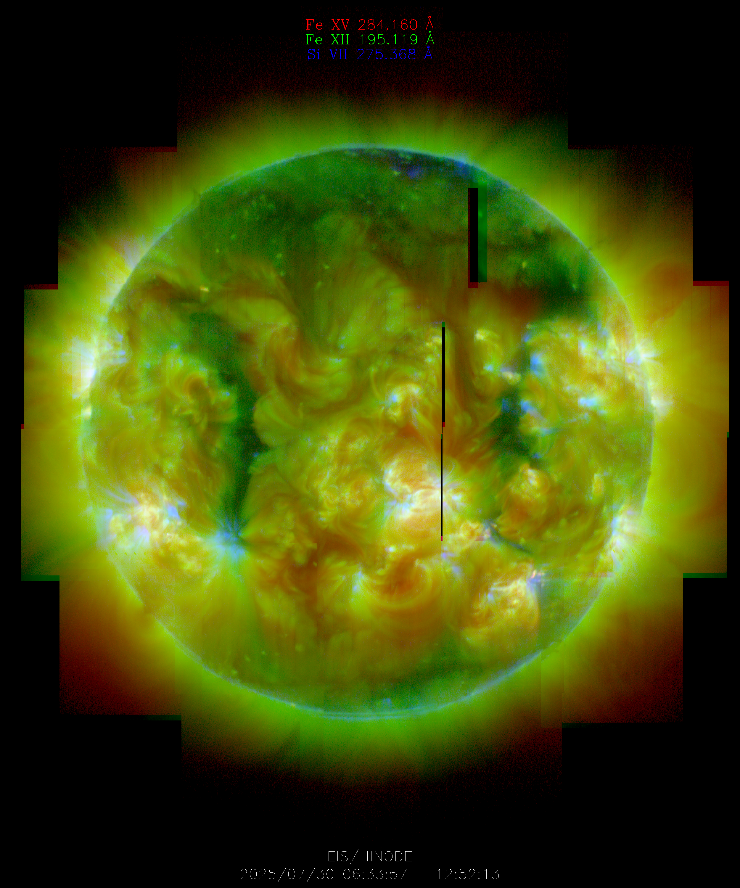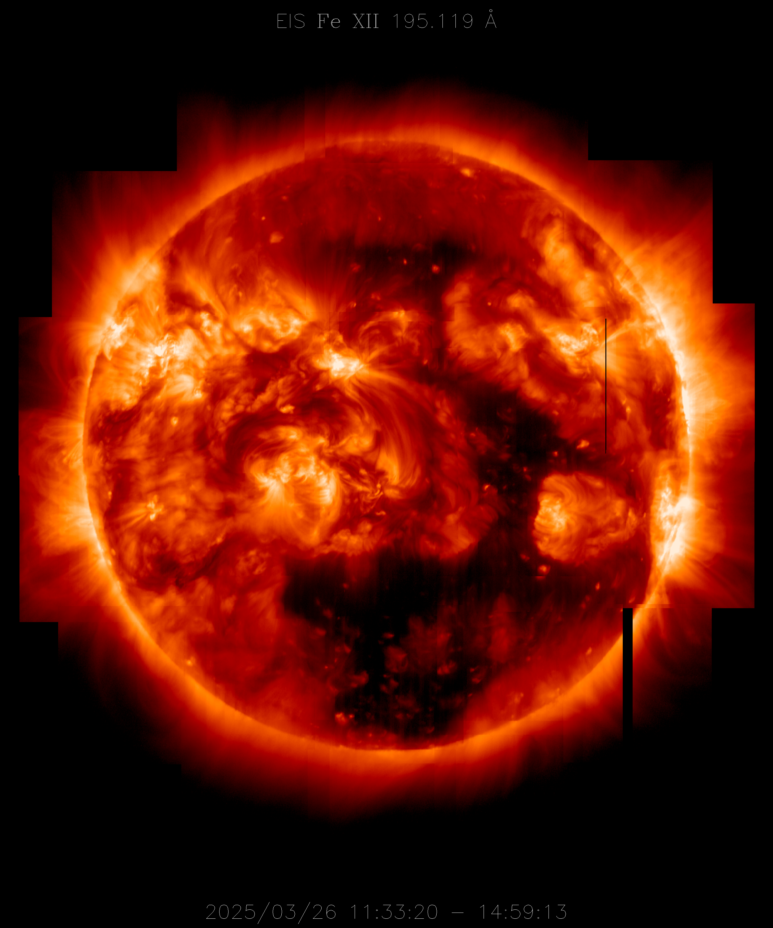 EIS takes full-disk mosaics every 3-4 weeks using the 40" slit (slot). This Hinode Observing Program (HOP130) started in 2009.