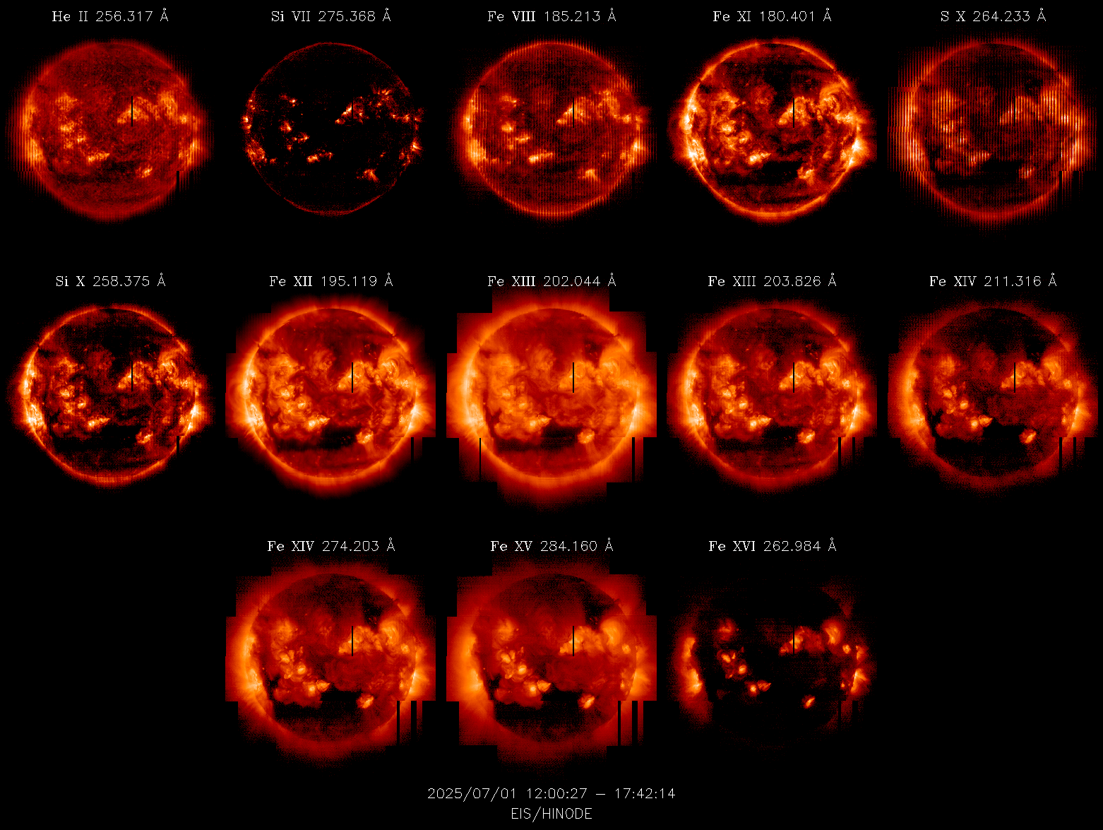 | SUMMARY | He II 256.3 | Si VII 275.4 | Fe XI 180.4 | Fe XII 195.1 | Fe XIII 202.0 | Fe XIII 203.8 | Fe XV 284.2 | Fe XVI 263.0 | Composite |